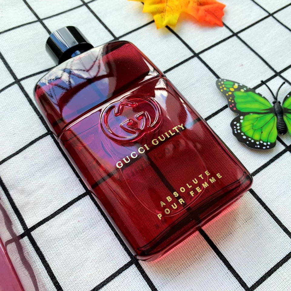 - Gucci Guilty Absolute Pour Femme sử dụng một hỗn hợp các thành phần đặc biệt mang đến hương vị mới lạ khi chạm vào da. Tông mùi gỗ đặc trưng của đàn hương và cam bergamot cùng ớt hồng được bổ sung với hương mâm xôi đen bí ẩn, tạo ra một hương vị trái cây đầy cá tính dành cho người phụ nữ đương đại. Thành phần của nước hoa được tăng cường với tinh dầu hoắc hương và hoa hồng Bulgari